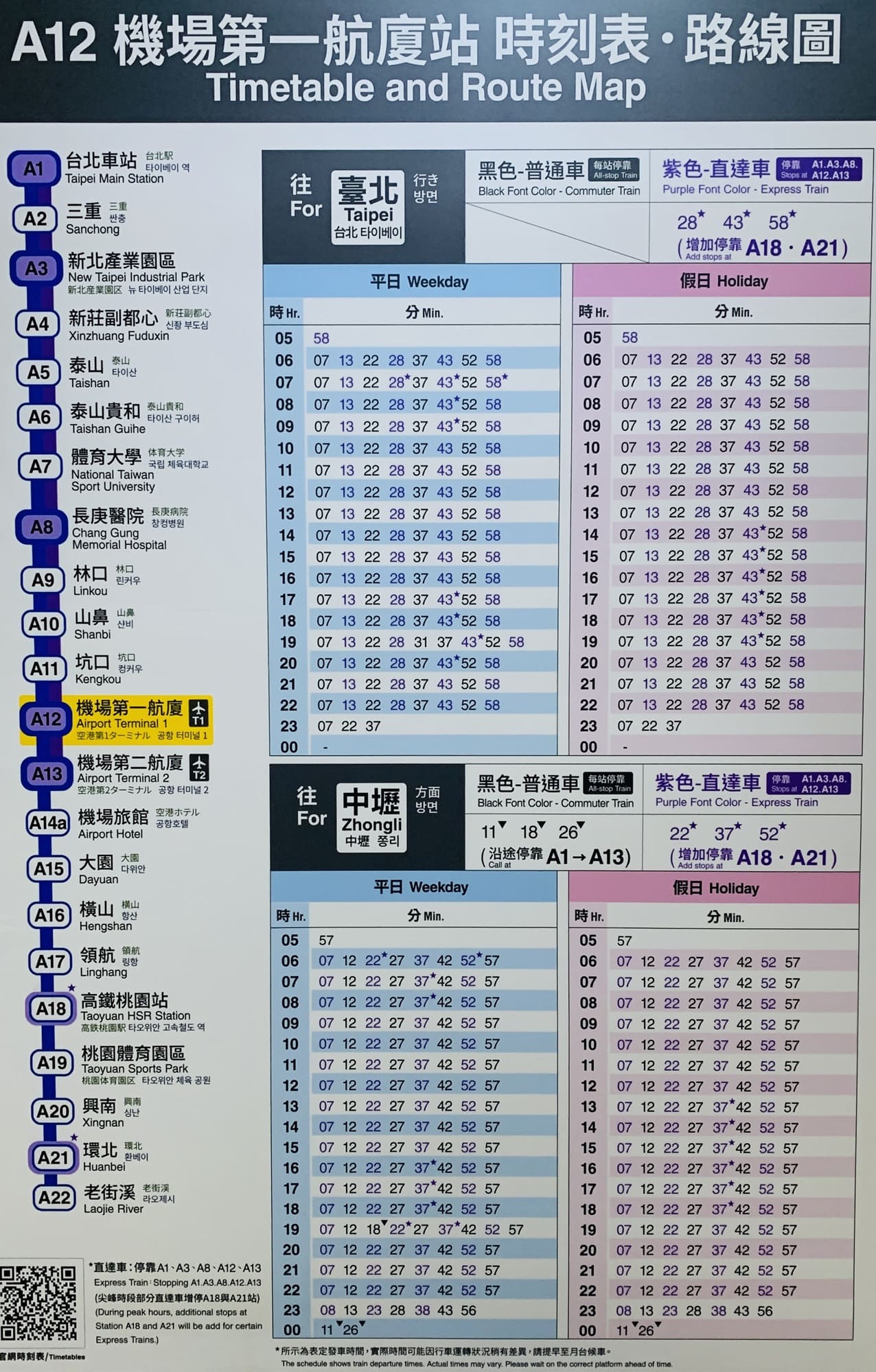 Taoyuan Airport MRT Schedule: Click image to view full size